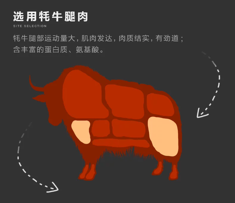 配料表:精选牦牛肉、白砂糖、食用盐、食用植物油、蜂蜜、白酒、味精、麦芽糊精、香辛料、大豆蛋白、食品添加剂(双乙酸钠、山梨酸钾)储藏方法:置于通风、阴凉干燥处,避免阳光直射。