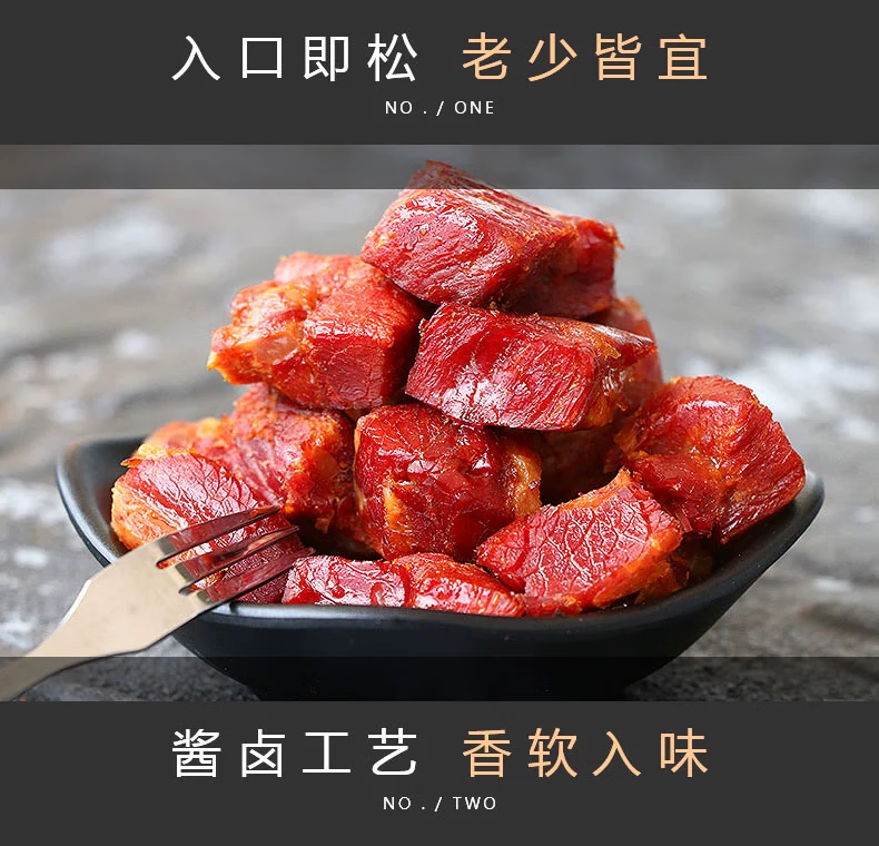 配料表:精选牦牛肉、蜂蜜、食用盐、食用植物油、鸡精、辣椒粉、香辛料、食用香精、食品添加剂(卡拉胶、D-异抗坏血酸钠)