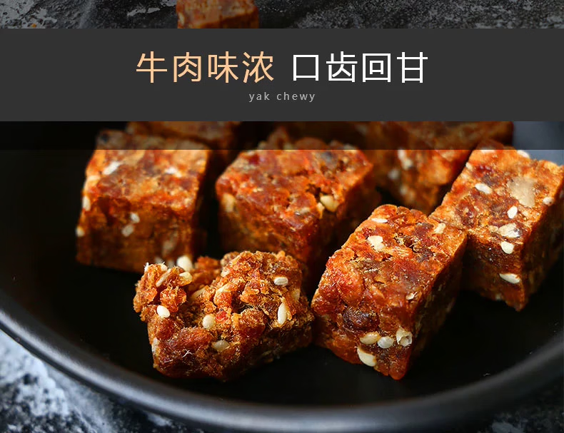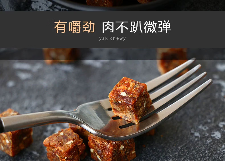 配料表:精选牦牛肉、白砂糖、盐、植物油、蜂蜜、白酒、味精、麦芽糖精、香辛料、大豆蛋白、食品添加剂(双乙酸钠、山梨酸钾 )